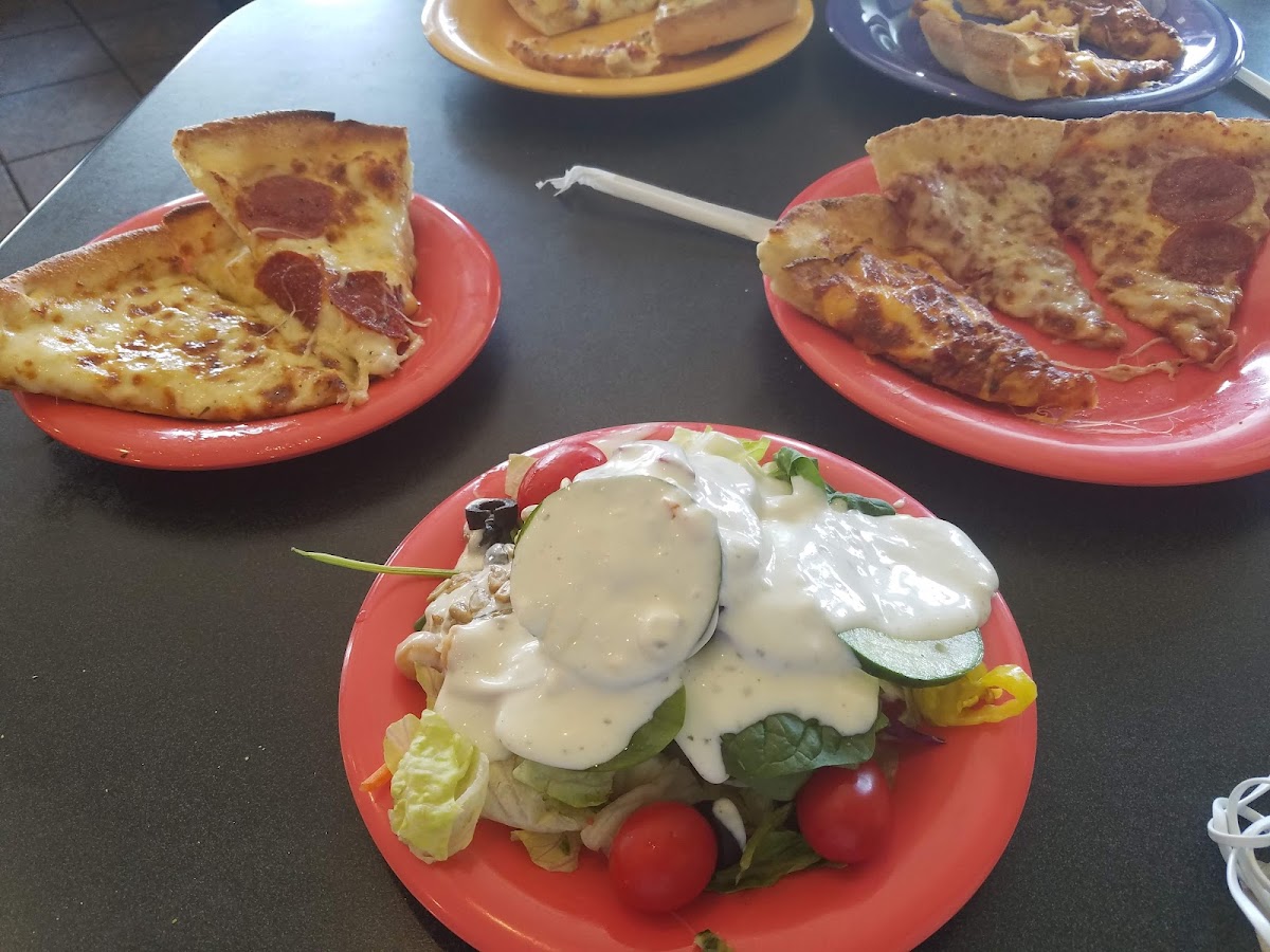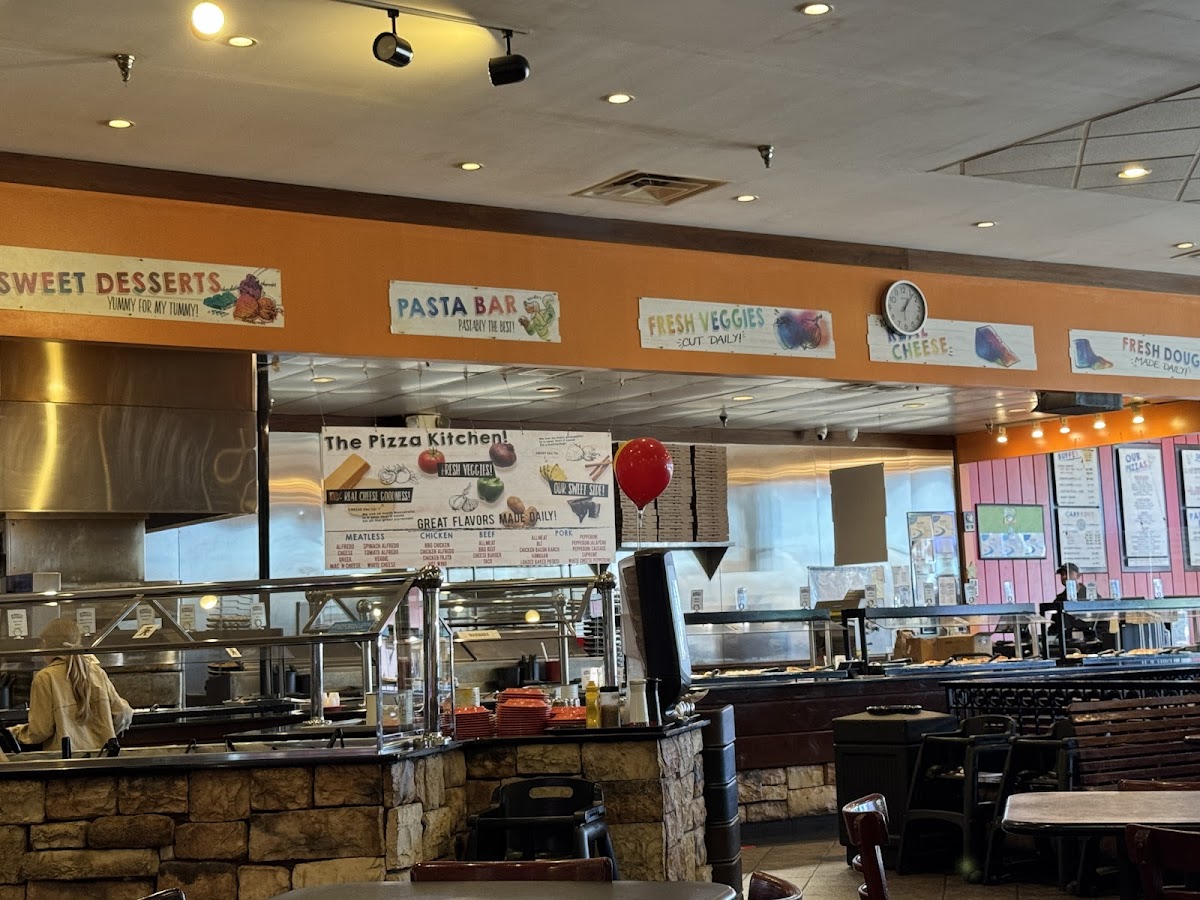 Walking in feels like stepping into a buzzing neighborhood diner rather than a chain restaurant. The menu is straightforward, yet surprisingly varied. You’ve got classic pepperoni and cheese, but also specialty slices like barbecue chicken, taco pizza, and even cinnamon dessert pies. What makes the buffet stand out is the way they rotate pizzas every few minutes. A staff member actually asked us what toppings we wanted and brought out a fresh pie within ten minutes. That little process-taking custom requests and sliding them straight into the oven-keeps the experience personal and avoids the sad, dried-out slices you find elsewhere.